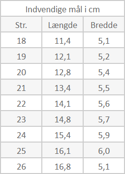 Vær også opmærksom på, at for godt 75% af danskerne er den højre fod lidt større. Det er derfor vigtigt, at du vælger målet efter den største fod. Ligger din fodlængde mellem 2 skostørrelser, anbefaler vi at du vælger den største, det giver bedst komfort i skoene.