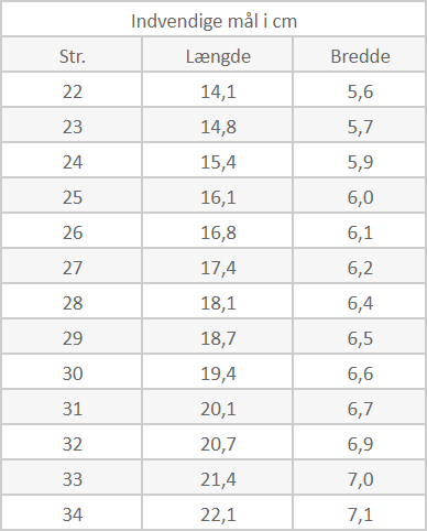 Vær også opmærksom på, at for godt 75% af danskerne er den højre fod lidt større. Det er derfor vigtigt, at du vælger målet efter den største fod. Ligger din fodlængde mellem 2 skostørrelser, anbefaler vi at du vælger den største, det giver bedst komfort i skoene.