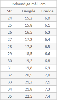 - Aflæs skoens inderlængde L i vores størrelsestabel