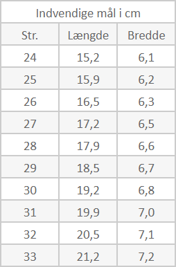 Vær også opmærksom på, at for godt 75% af danskerne er den højre fod lidt større. Det er derfor vigtigt, at du vælger målet efter den største fod. Ligger din fodlængde mellem 2 skostørrelser, anbefaler vi at du vælger den største, det giver bedst komfort i skoene.