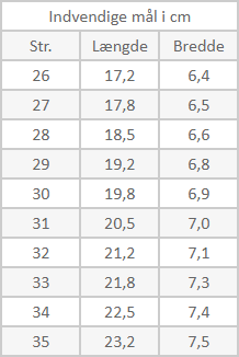 Vær også opmærksom på, at for godt 75% af danskerne er den højre fod lidt større. Det er derfor vigtigt, at du vælger målet efter den største fod. Ligger din fodlængde mellem 2 skostørrelser, anbefaler vi at du vælger den største, det giver bedst komfort i skoene.
