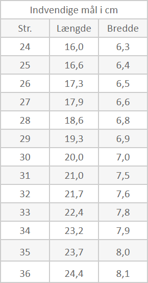- Aflæs skoens inderlængde L i vores størrelsestabel